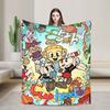 Pokój zabaw Cuphead i Mugman wzór koc flanelowy przytulny koc na łóżko lekki miękki rzut koc Sofa kołdra na wszystkie pory roku