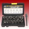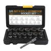 Zestaw wykrętaków do śrub udarowych 3/8”, 13 szt. Zestaw do usuwania nakrętek Zestaw narzędzi z nasadkami obrotowymi 1/4”-3/4” z końcówką sześciokątną 1/4” na adapter nasadki 3/8”