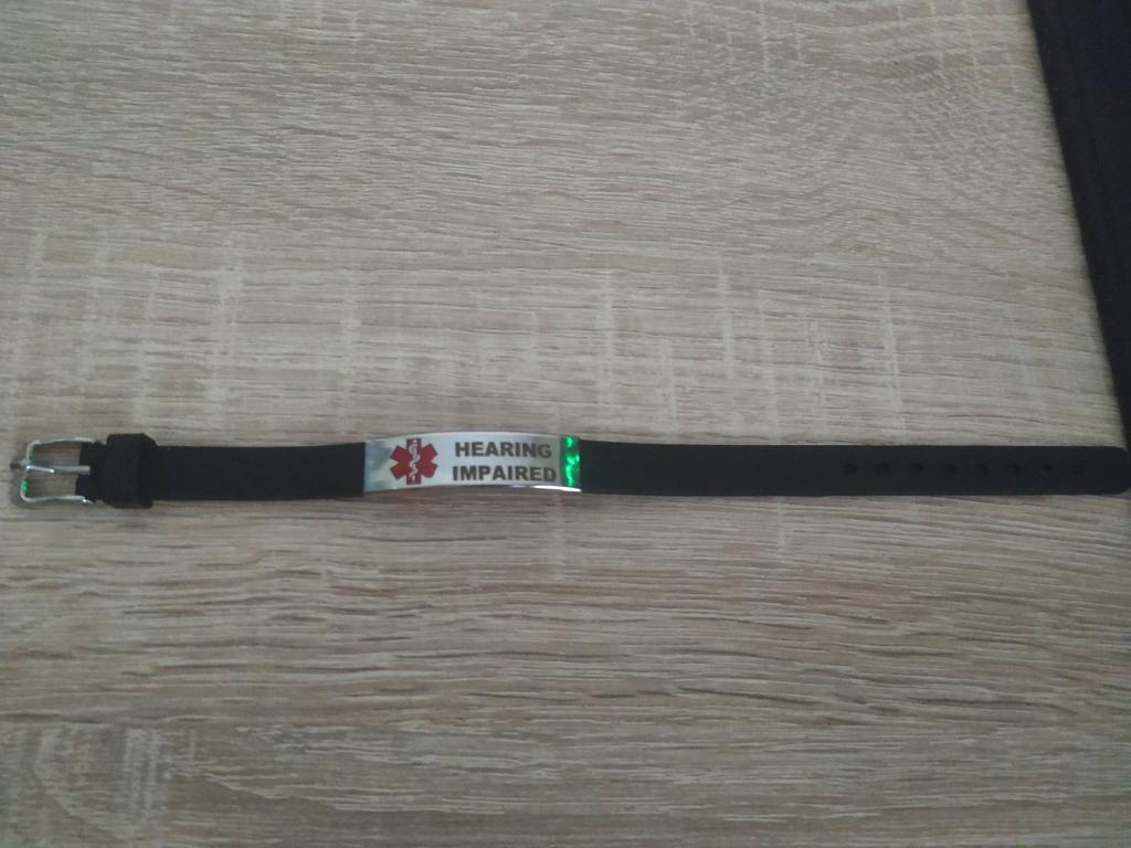 niedosłyszący - bransoletka medyczna - identyfikator dla osoby niedosłyszącej. Zwykłe bransoletki gumowe w przystępnych cenach.