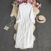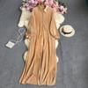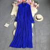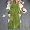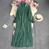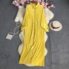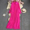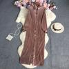 Letnia, jednokolorowa, luźna plisowana sukienka z klapami