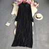 Bardzo ładna długa sukienka, plisowana za wyjątkiem rękawów i kołnierza. 👍🥳 Tkanina jest poliestrowa, ale dość przyjemna dla skóry. Wow. 💝😘 Cięcia, szwy i wykończenia są dobrze wykonane. Tak. 💓💋 Długość jest przestrzegana, ale szerokość wynosi tylko 112 cm. 😂🥴