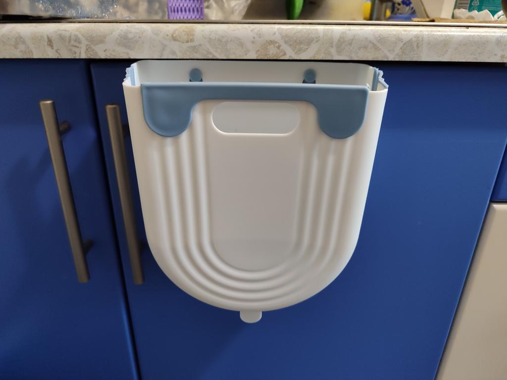 Składany kosz na śmieci, bardzo wygodny. Wcześniej miałem inny, plastikowy, trzeba było go ciągle zdejmować, bo przeszkadzał podejść do zlewu, a ten jest wykonany z materiału, z którego robi się składane miski i pralki, lekko naciskasz i górna część się składa, nic nie przeszkadza. Z zakupu jestem zadowolony.