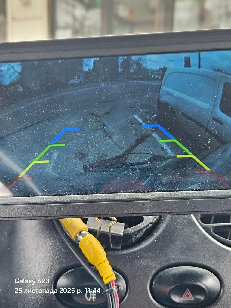 Atrakcja: Ten aparat jest aparatem przednim i nie ma znacznika odległości jako domyślnego ustawienia kopii zapasowej. Aby używać go jako kamery cofania, musisz przeciąć zielony przewód pętli. Aby wyświetlić prowadnicę parkowania, przetnij biały przewód pętli.