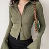 Bluzki Polo Klapa Jednorzędowy Rozszerzany kołnierzyk Koszula z jednolitym rękawem Pięciokolorowa damska Wąska koszulka z długim rękawem Casual Streetwear Top