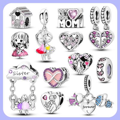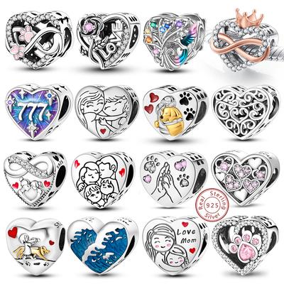 925 srebrne serce srebrna seria wisiorek koraliki Charm w stylu Fit oryginalna bransoletka naszyjnik dla kobiet Diy Making biżuteria na prezent