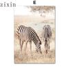 Beżowy krajobraz użytków zielonych lew Zebra ptak zwierzęta obraz ścienny na płótnie skandynawskie plakaty i druki wystrój wnętrz salonu
