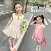 Dziewczęca śliczna sukienka letnia dziecięca fałszywa dwuczęściowa plisowana spódnica księżniczka sukienka długa spódnica