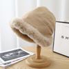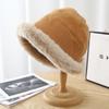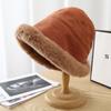 Jesienno-zimowa czapka typu bucket dla kobiet zagęszczona ciepła wełniana czapka kopuła kapelusz z szerokim rondem jednolity kolor wiatroszczelna czapka odzież akcesoria