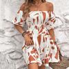Moda seksowna, bez pleców, z płaskim nadrukiem na ramionach, damska jednoczęściowa sukienka