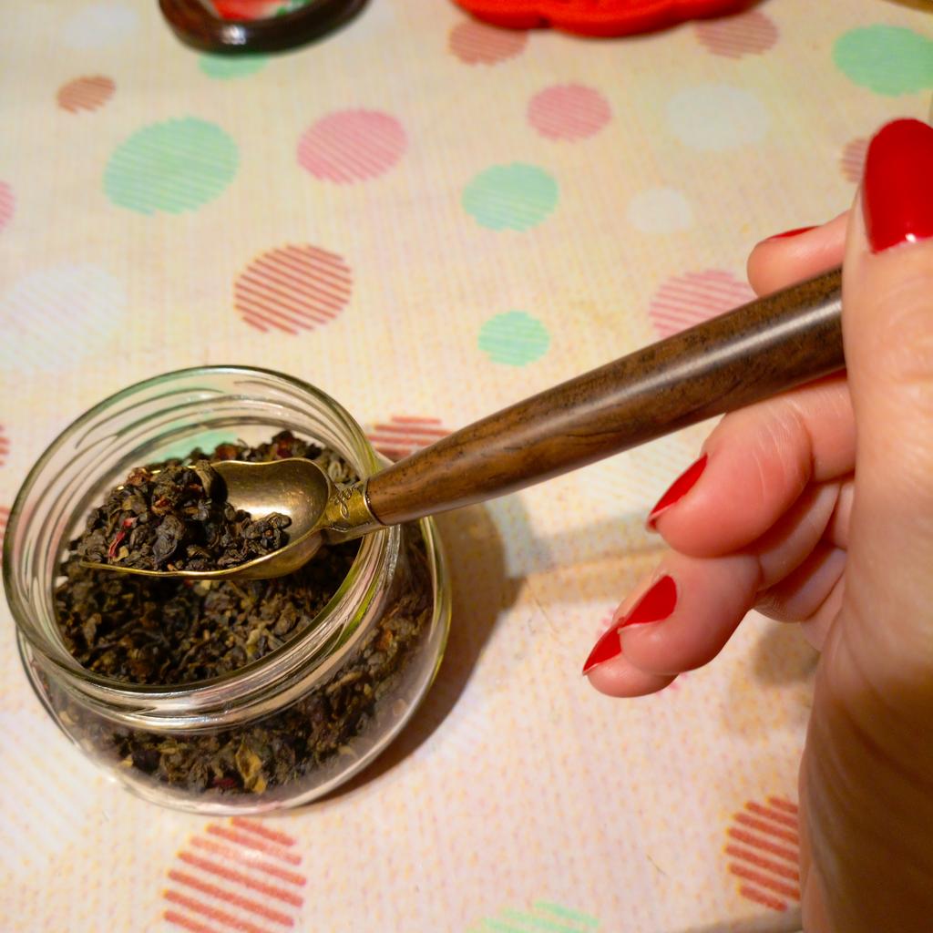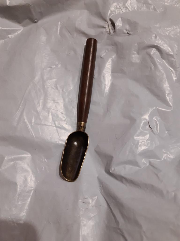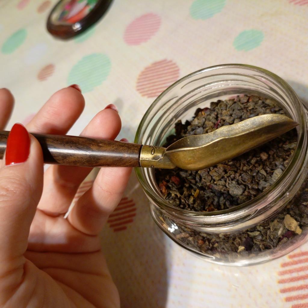 Ładna, zabytkowa łyżeczka do herbaty. Uchwyt jest wygięty, co ułatwia wyjmowanie herbaty z torebki lub słoiczka bez rozsypywania. Uwielbiam takie rzeczy w kuchni.