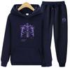 Jesienno-zimowe bluzy + spodnie Dwuczęściowy zestaw Drukowanie Męskie bluzy damskie Dresy Spodnie do biegania Grube, ciepłe ubrania męskie