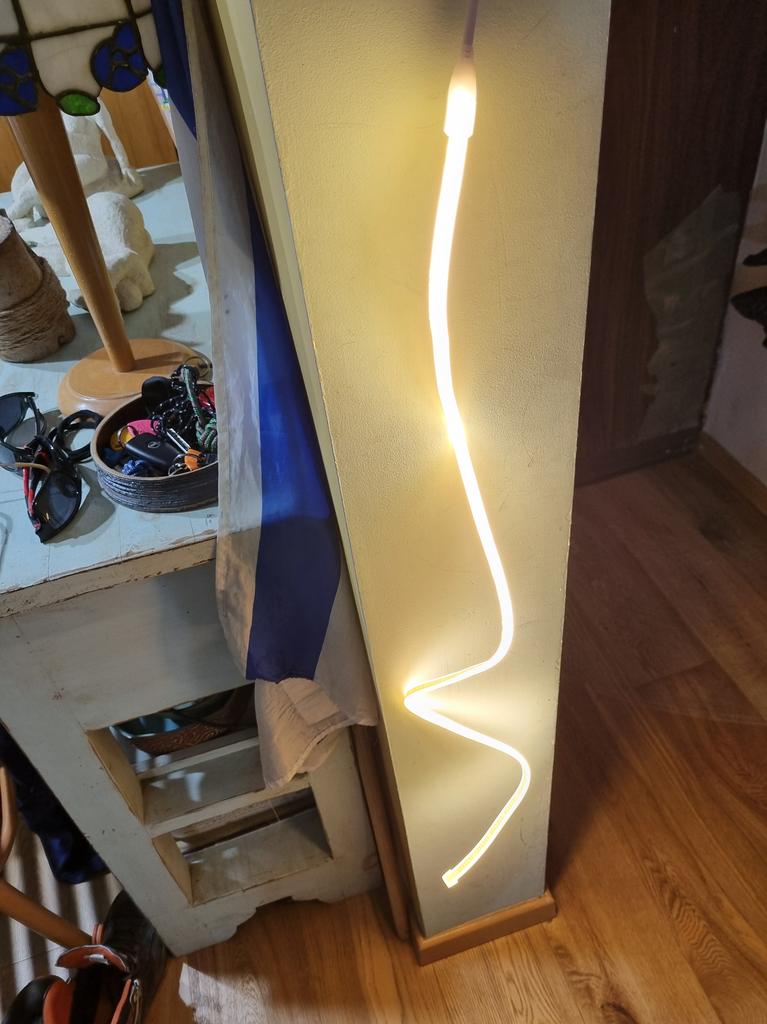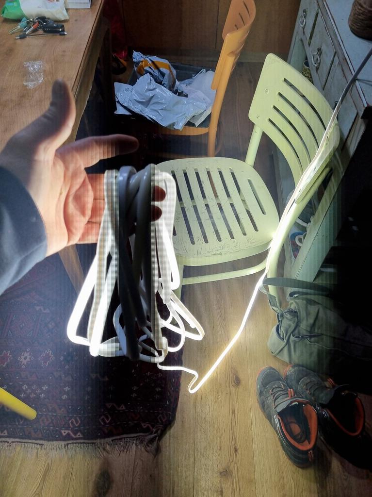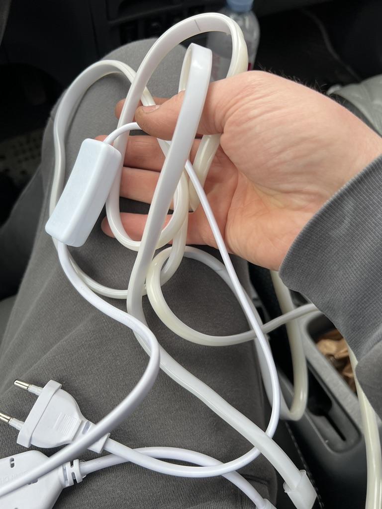 Całkiem ciekawa taśma, ale na pewno trzeba się zastanowić, gdzie ją umieścić, obok gniazdka i gdzieś włożyć kawałek przedłużacza. A potem są zapięcia, które przykleiłem taśmą dwustronną, myślę, że nie na długo.