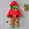 Strój Świętego Mikołaja na Boże Narodzenie Ubranka dla niemowląt Chłopcy Dziewczynki Pluszowy Pasiasty Kaptur Kombinezon na 0-24 Miesiące