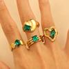 Vintage zielone kryształowe pierścionki dla kobiet pozłacane kolorowe stalowe geometryczne luksusowe Anillos Lady biżuteria prezenty Bague