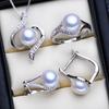 LSOOYH Naturalny naszyjnik z pereł słodkowodnych, wisior z kwiatem, modne kolczyki, pierścionki dla kobiet, zestawy biżuterii z pereł