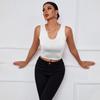 Damska letnia, swobodna, jednokolorowa, dekolt w serek, odsłonięta kamizelka na brzuchu, krótki top