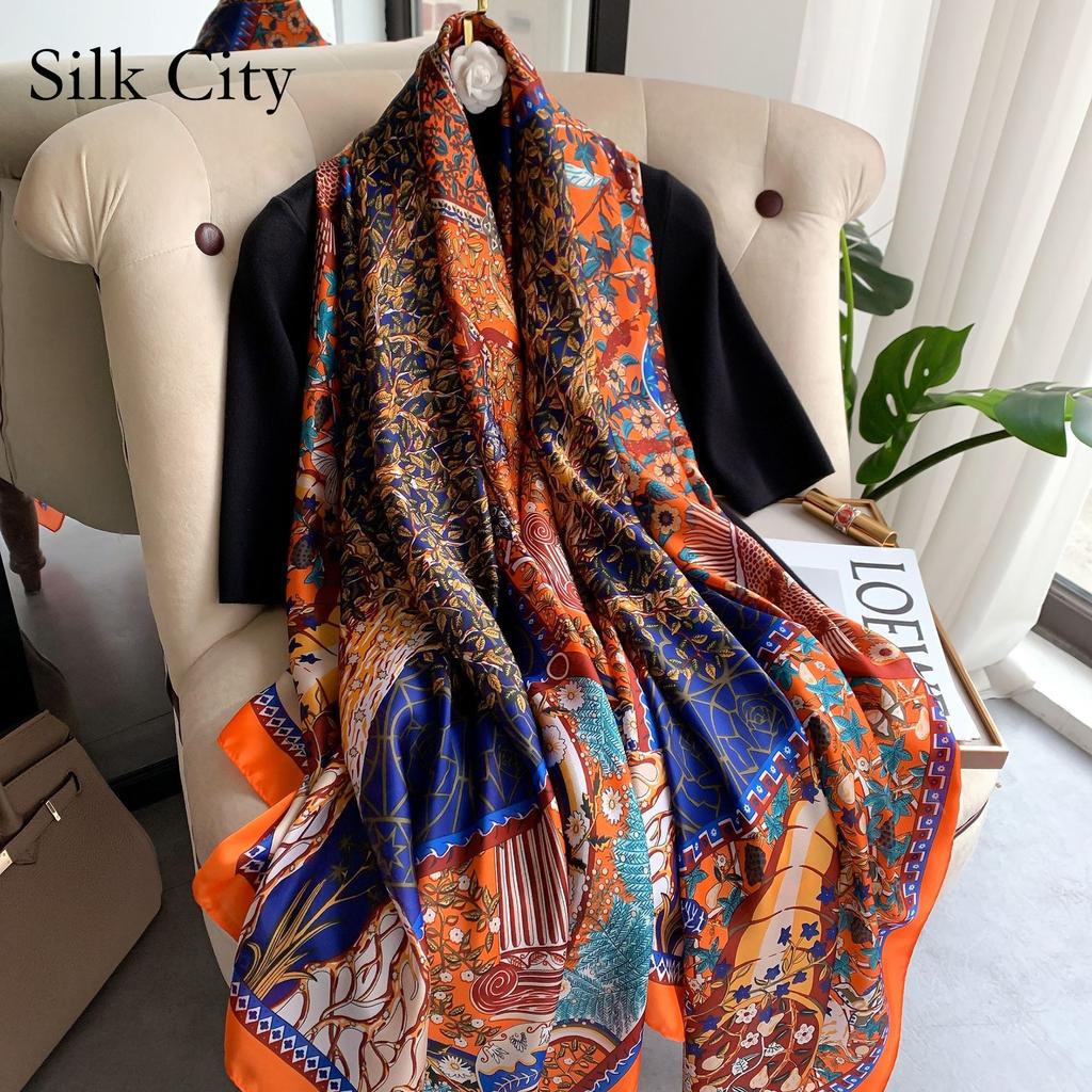 Wysokiej jakości luksusowe jedwabne szale z pałąkiem na głowę szaliki szalik dla kobiet łańcuszek jedwabny szal damski dekoracyjny szal