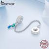 BAMOER 925 Sterling Silver Blue Emalia Feather Łańcuch Bezpieczeństwa nadające się do Charms Bransoletka i Bransoletka Klip Charms DIY Biżuterii