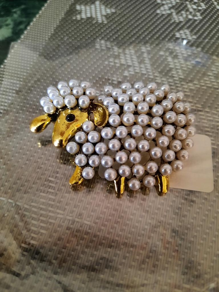 Blucome Nowe śliczne perły owce broszki dla kobiet i mężczyzn białe szare zwierzęce w stylu casual, imprezowa szpilki biżuteria