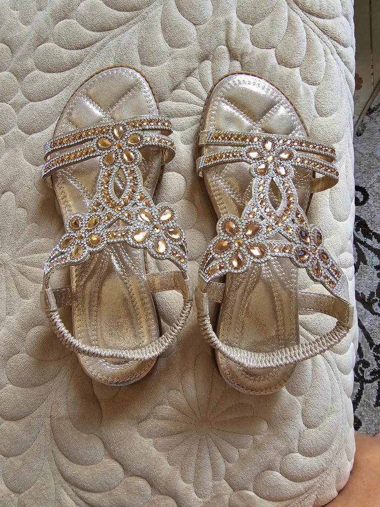 Wygodne buty damskie Płaskie sandały Rhinestone Duże rozmiary Hollow Casual Sandały