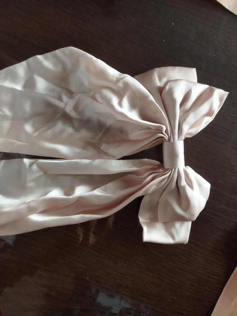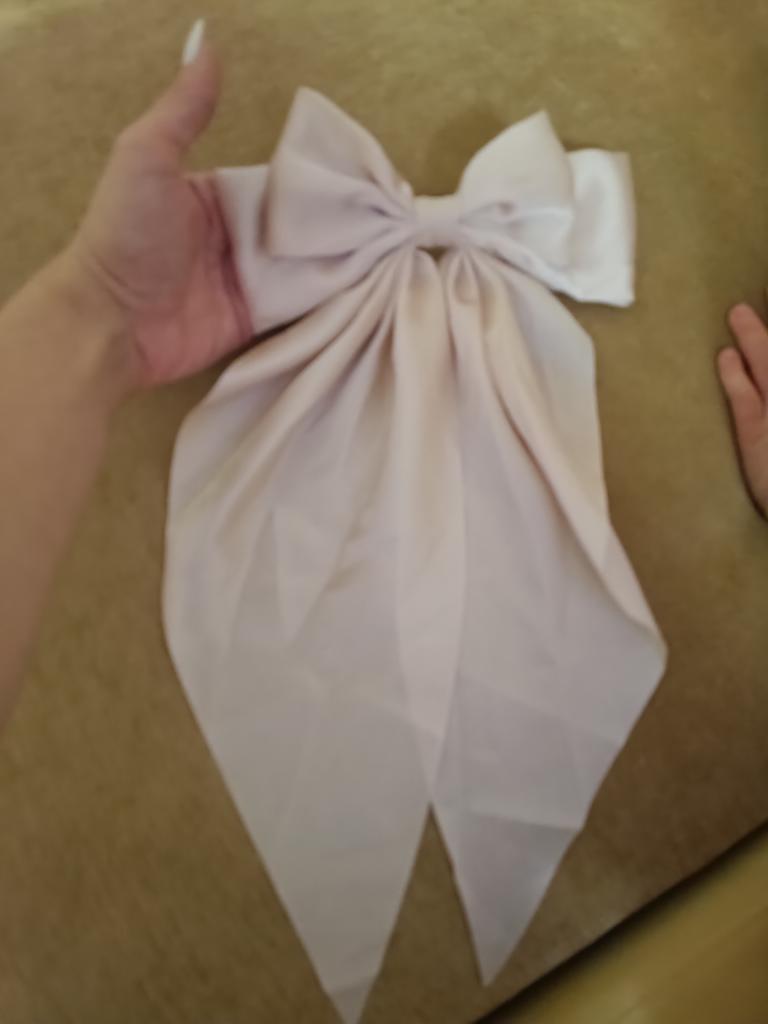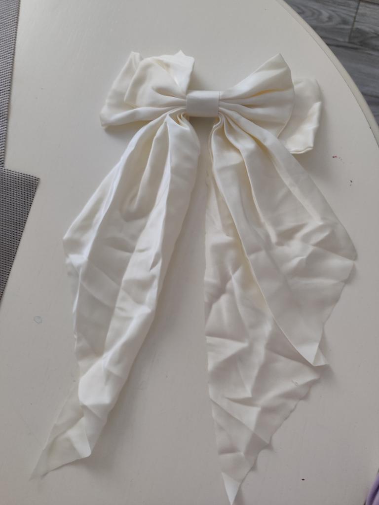 Z wyglądu zgrabna i piękna kokardka, jedyne co mi przeszkadza to cienki materiał, jakby był przezroczysty, jeśli spojrzeć na to w świetle
