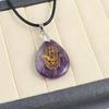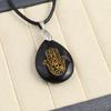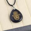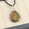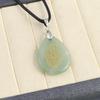 Naszyjnik z kamienia naturalnego malachit/zielony awenturyn bergamotka wisiorek ze wzorem dla kobiet prezent urodzinowy skórzany łańcuszek 45 + 5 CM