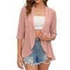 Damska odzież wierzchnia z odkrytymi przodami, wieloma małymi, oddychającymi dziurkami, rękawem 3/4, kardiganem z nieregularnymi brzegami, drapowanymi falbankami i oczkami, oddychającym i wygodnym.