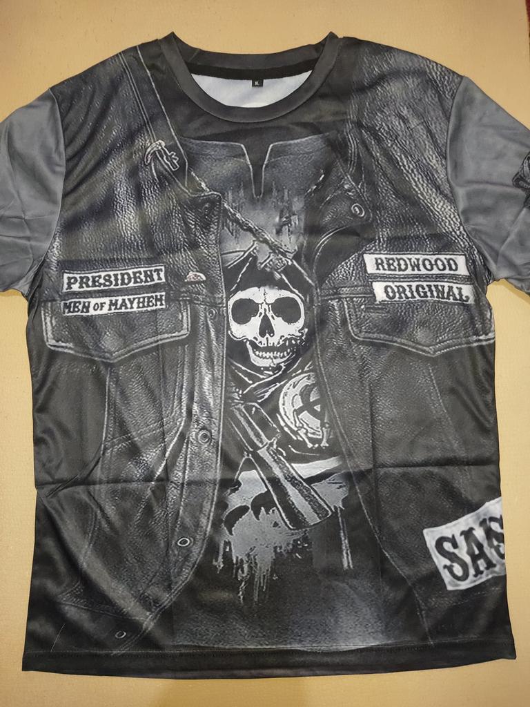 Męska koszulka motocyklowa Vintage Punk z krótkim rękawem nadruk z czaszką męska koszulka ponadgabarytowa Casual hip-hopowa koszulka letnia męska koszulka