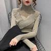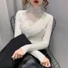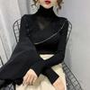 Potargany sweter z półgolfem damski jesienno-zimowa odzież koronkowy styl samo-uprawa Hollow dzianina najniższa koszula Top