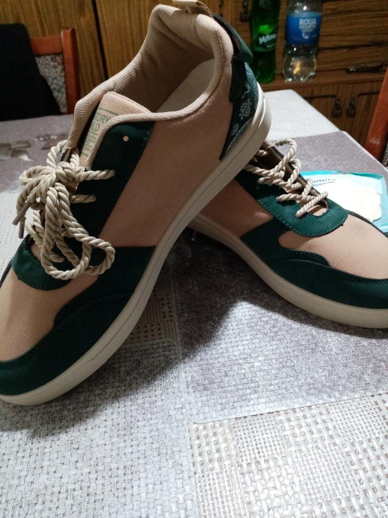 Normalne tenisówki. Rozmiar 41 na stopę 25,5 cm od końca do końca. Ale szerokość jest szeroka dla wąskiej stopy. Sznurowadła syntetyczne. Ogólnie lekkie i wygodne.
