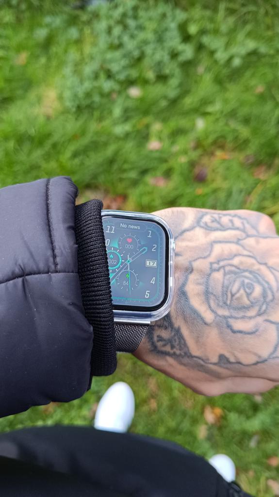 Dla mnie wygląda idealnie. Podoba mi się druga bransoletka, która przyszła. Jest czarna i super ok w porównaniu do oryginalnej bransoletki na stil. Bateria działa dobrze i długo. Szybki i fajny zegarek.