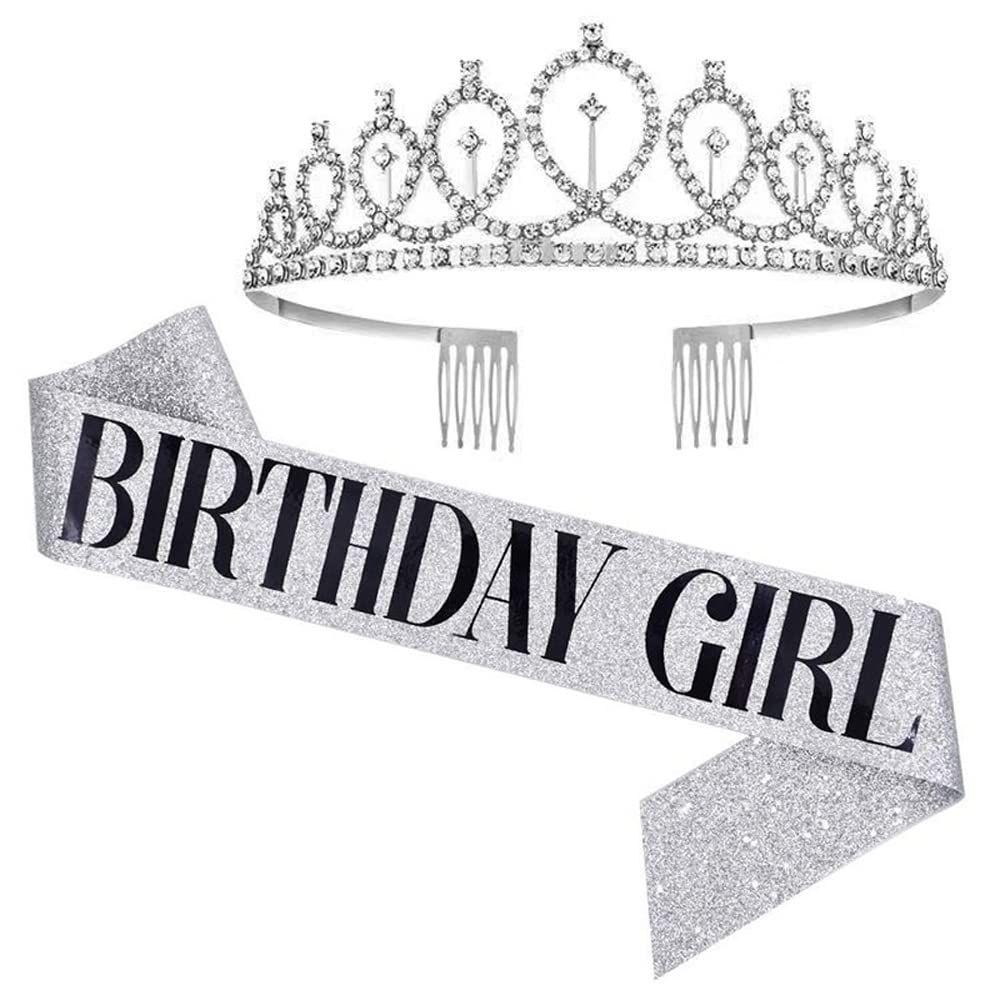 Stylowa Szarfa i Korona Urodzinowa - Opakowanie 2 Szt. | Prezenty Urodzinowe dla Najlepszej Przyjaciółki, Siostry, Nastolatki | Dekoracje Urodzinowe dla Dziewcząt