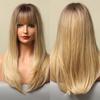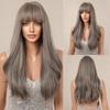 EASIHAIR Długie proste peruki z grzywką Szare syntetyczne peruki dla kobiet Codzienne peruki cosplay Peruki z włókien odpornych na ciepło