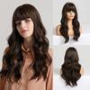 HAIRCUBE długie brązowe niebieskie podkreślenie falista peruka syntetyczna peruka z włosów naturalnych dla kobiet codzienna żaroodporne sztuczne włosy z grzywką