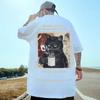 Lato na co dzień Plus Size luźne swetry z krótkim rękawem i dekoltem w kształcie litery "o", czarny nadruk z kotem, męski sweter w stylu hippopowym T-shirt Top