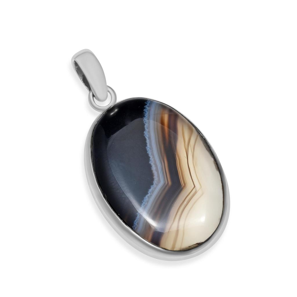 Botswana Agat Kamień szlachetny 925 Sterling Silver Ręcznie robiony owalny wisiorek dla kobiet i dziewcząt