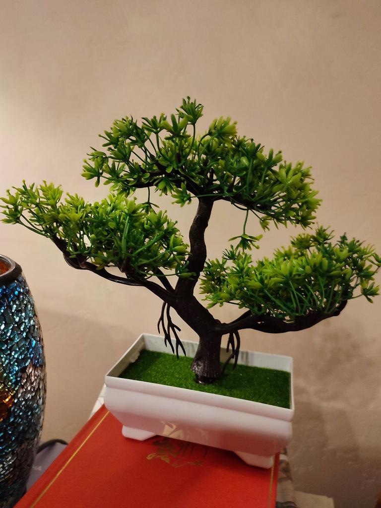 Piękne sztuczne drzewko. Wygląda bardzo ładnie na półce.
