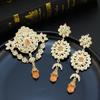 Elegancki pomarańczowy kryształ kobiety zestaw broszek arabska biżuteria ślubna dla panny młodej hidżab Pin okrągły kwiat broszka Bijoux