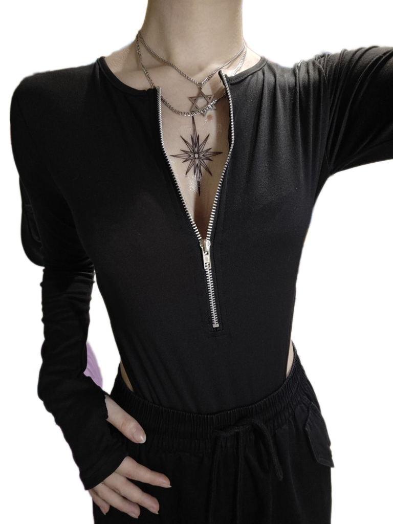 Letnie nowe transgraniczne europejskie i amerykańskie damskie body z długim rękawem slim fit seksowna pikantna dziewczyna spersonalizowany top z zamkiem błyskawicznym