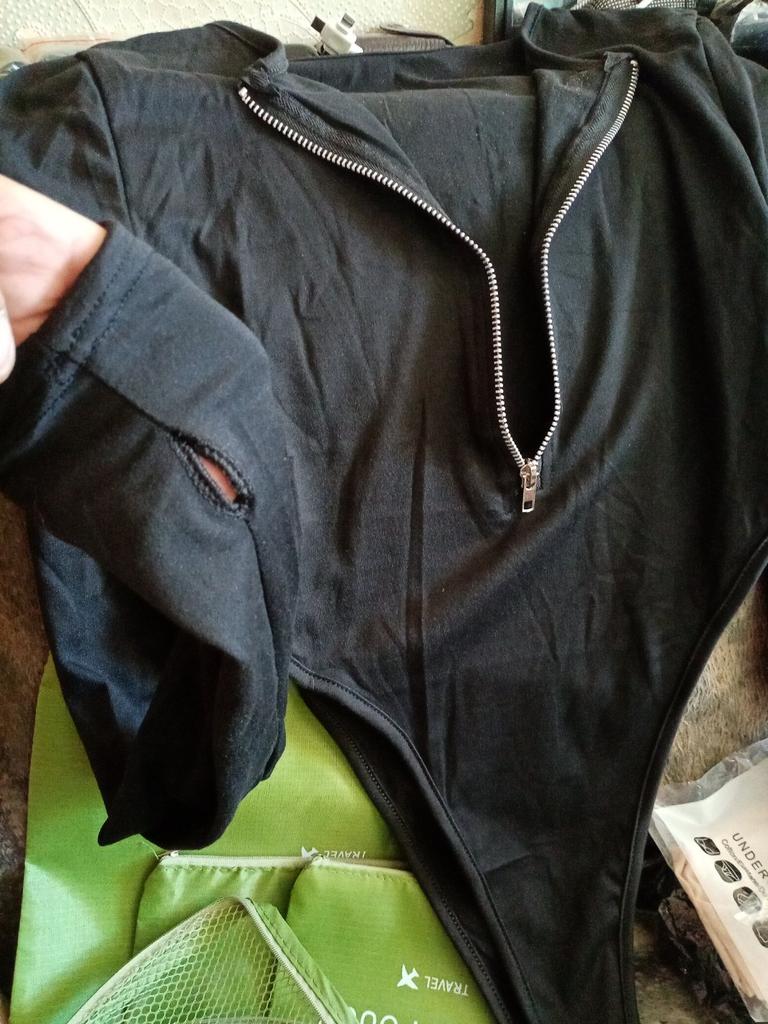 Przyjechało na czas, bez opóźnień. Wspaniałe body, materiał, szwy, jakość po prostu wspaniała, zamki i nity - w pełni sprawne, noszę codziennie z przyjemnością.