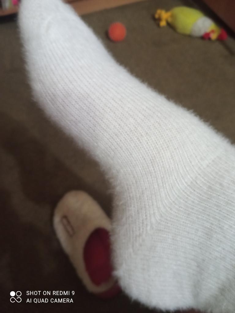 Skarpetki przylegają bardzo ciasno, wolałabym, żeby były trochę luźniejsze. I taki ciepły, miękki.