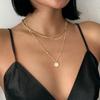 Vintage Warstwowy naszyjnik Wisiorek moneta Zroszony łańcuszek do obojczyka Elegancki damski temperament Biżuteria Akcesoria