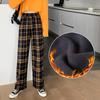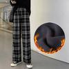 Zimowe spodnie w kratę Spodnie z szerokimi nogawkami Damskie Nowe Spodnie z wysokim stanem i wyściółką Spodnie codzienne