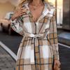 Sukienka koszulowa w kratę dla kobiet Jesień Zima Moda Swobodna Kołnierz Z Kołnierzem Z Paskiem Długie Rękawy Sukienki Midi Damskie Seksowne Sukienki Biurowe