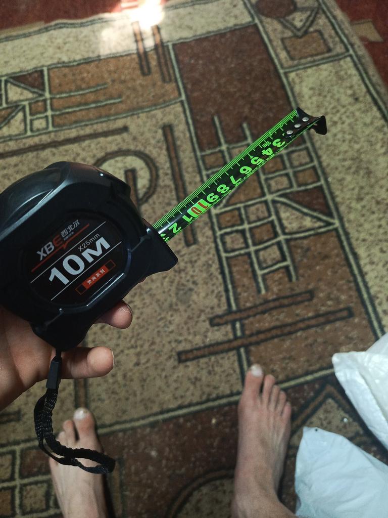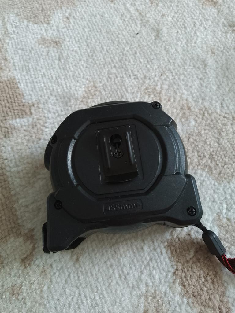 Normalna miarka. Ale dwa minusiki: cienka taśma - daleko nie wyciągniesz, upadnie. I mechanizm blokujący z grzechotką, póki co nie mogę się przyzwyczaić)).