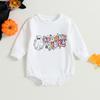 Jesienne chłopięce dziewczęce pajacyki na Halloween ubrania duch list drukuj bluzy z długim rękawem i dekoltem w kształcie litery "o" kombinezony