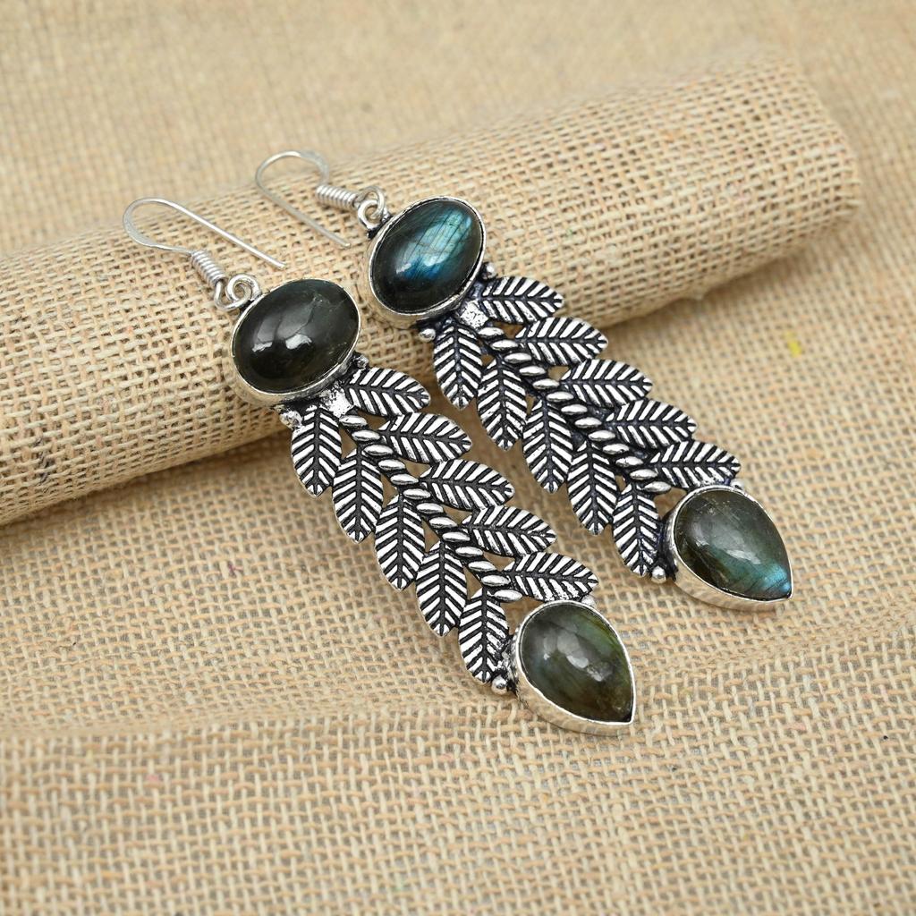 Kolczyki z labradorytu Delikatne kamienie szlachetne Ręcznie robiona biżuteria z próby 925 ze srebra dla prezentów