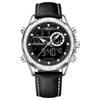 Najnowsze modne zegarki sportowe Wielofunkcyjne wskazówki Wodoodporny, świecący skórzany pasek z podwójnym wyświetlaczem Luksusowe męskie zegarki biznesowe