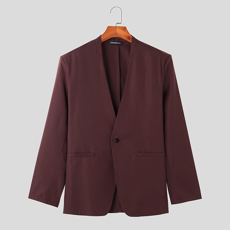 INCERUN Męska lekka marynarka w jednolitym kolorze z jednym guzikiem, marynarka biurowa