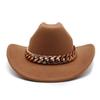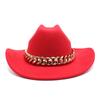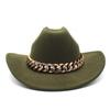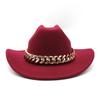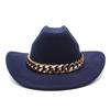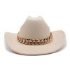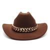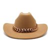 Vintage zachodni kapelusz kowbojski z grubym złotym łańcuszkiem zakrzywiony okap Cowgirl czapka jazzowa kobiety filcowe kapelusze Fedoras